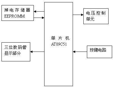 对软件流程做一下说明:当电源打开的时候,MCU进行复位,寄存器清零。接着电源应该显示和输出上次关机前的电压大小,这时候MCU先读取EEPROM中保存的电压编号,根据电压编号读出对应电压,把该数据送到DA,在转换成BCD码送到显示部分。这时候程序循环检测是否有按键信号,如果KEY1按下,电压编号指向下一个,保存该电压编号,读对应电压,把他送到DA并且显示。如果KEY2按下,当前电压数据加1,相对应输出电压(POWER—OUT引脚)增加0.1V,保存设置电压数据。如果KEY3按下,电压数据减1,输出电压