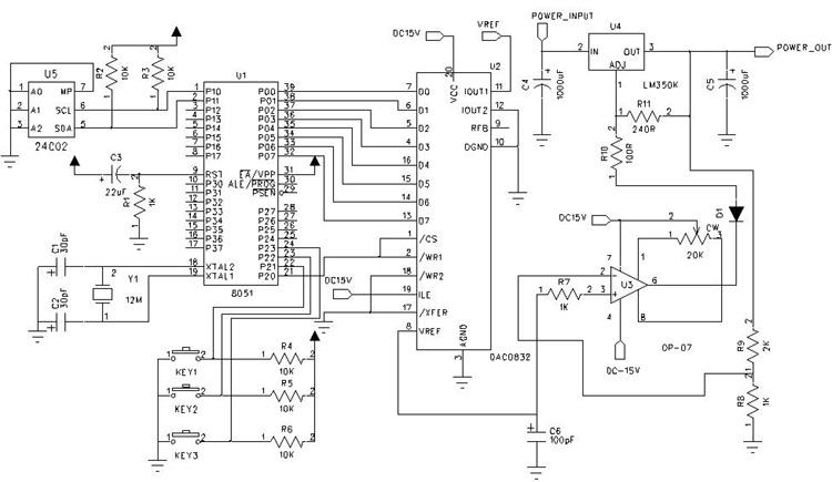 本文介绍了以51系列单片机为控制单元,以数模转换器DAC0832输出参考电压,以该参考电压控制电压转换模块LM350的输出电压大小。该电路设计简单,应用广泛,精度较高等特点。