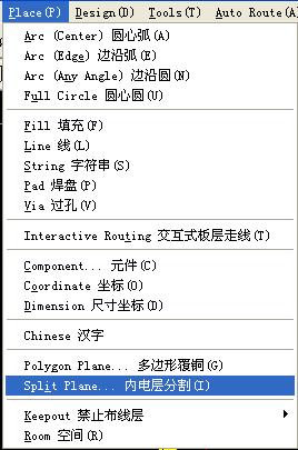 先确定要走在内电层的网络,再单击主菜单Place, 选择 项。如图: