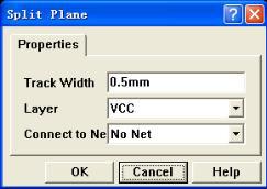 双击VCC层,在弹出的对话框中,在Net name 的下拉对话框中选择VCC网络,给这一层真正定义为VCC网络,之前的只是取个VCC的名称而已,与VCC网络相同的元件管脚及过孔,均会与该层自动连接,从而不用布线。