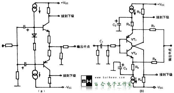 第2级为发射极接地的放大电路,图1中,在VTl和VT8的集电极之间构成后级偏置电路。为抑制噪声,驱动与输出级中的负反馈电路采用较小阻值的电阻这样就加重了输出级的负载。为克服这一矛盾需增加驱动级,这样既提高了开环增益,又能较好地驱动负载。