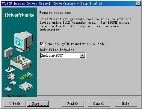 9. 在如图11所示的对话框中, 我们选择给端点2产生BULK Write的代码, 并且按"Next "按钮. 这样, DW也会给我们产生一套对端点2进行写的代码, 不用修改, 就可以直接使用.