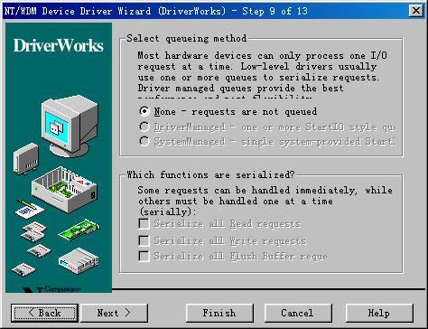 10. 对于如图12的对话框, 我们直接按"Next >"按钮. 这里是设置是否要将I/O请求排队, 在这里, 我们不需要排队.