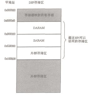 图1  通过HPI 可以访问的DSP 存储区图